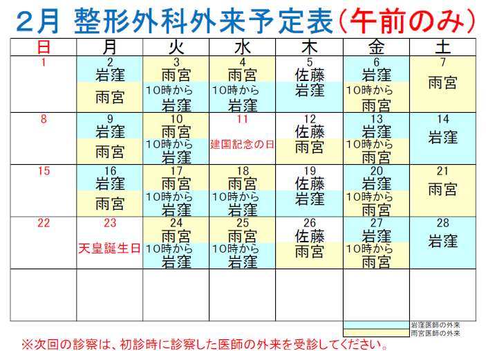 ※都合により外来診察予定表の医師が変更になる場合もあります。